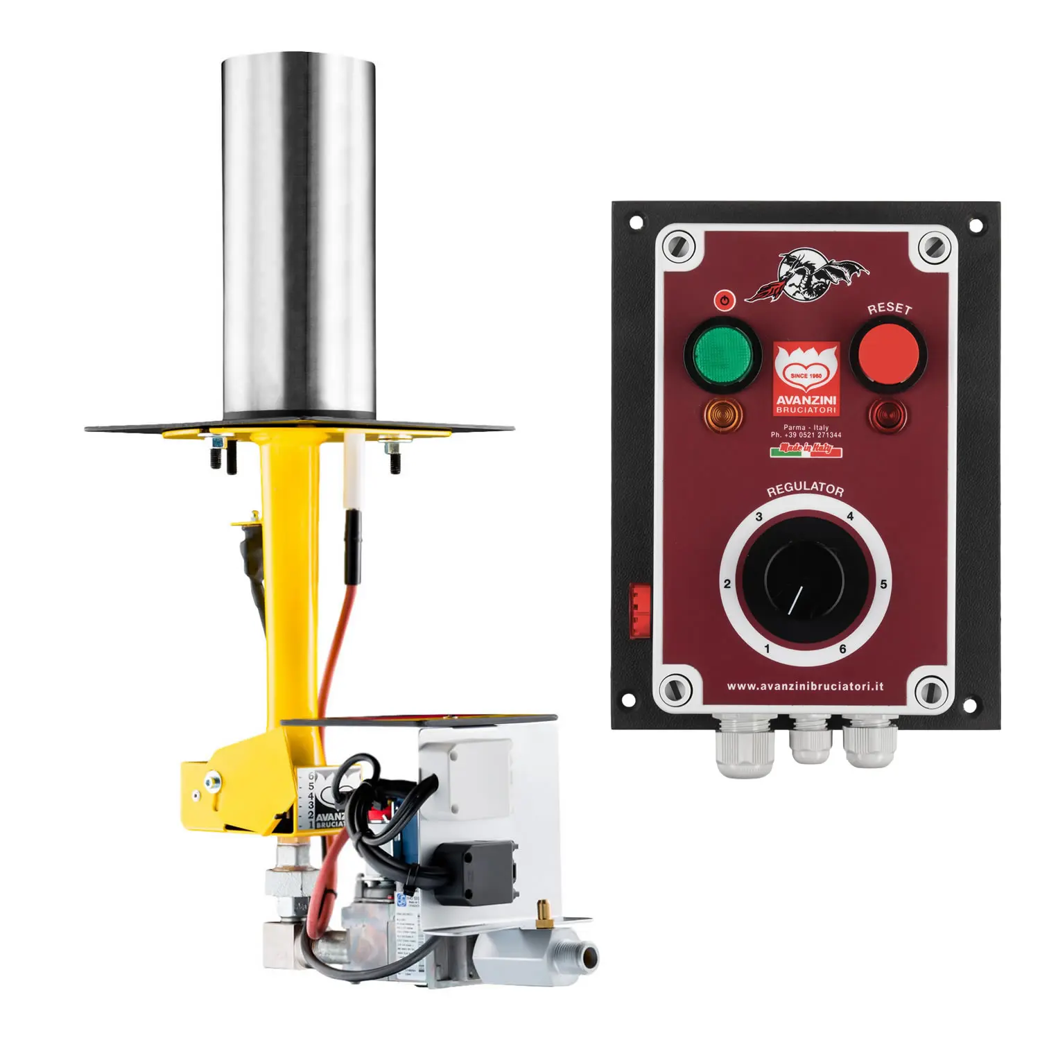 Incluye los cables con clavijas y permite el funcionamiento del quemador y del cuadro de control en caso de corte de corriente.
